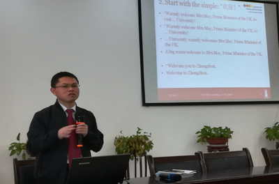 师生作系列讲座。讲座的主题包括:中国“走出去”过程中的翻译问题;如何在口笔译中实现真正的国际沟通?从中英两国早期交往史看口笔译活动的作用;从语言学习到内容学习——语言和翻译专业学生的竞争优势;口译能力有何特别之处?——从语言能力到口译能力的进阶;翻译学研究项目的选题——基于英国艺术和人文基金项目(AHRC)的分析。讲座分别由黑料正能量