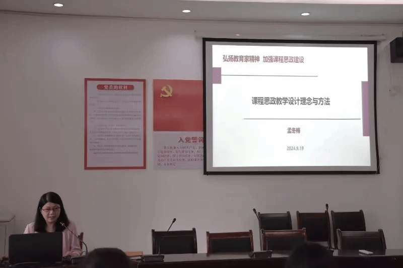 全体教职工于教15栋102会议室开展“课程思政教学设计理念与方法”专题教学研讨会。会议由院党委书记薛先庆主持,孟冬梅老师主讲。