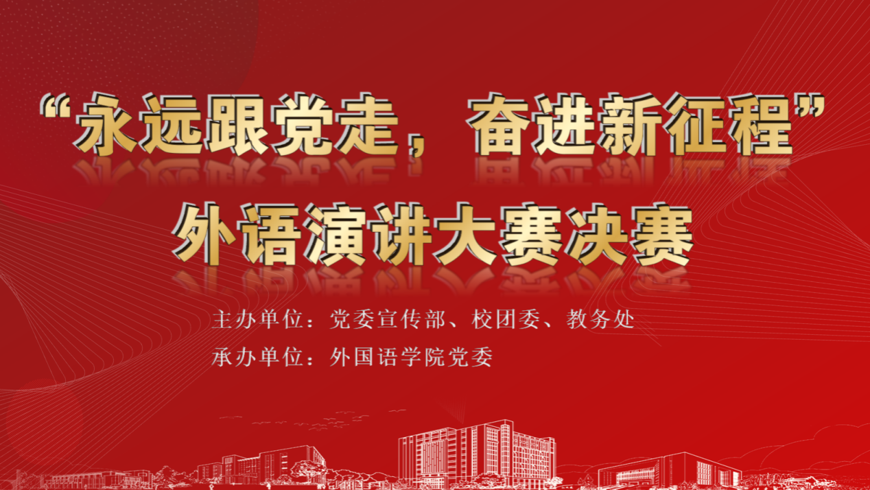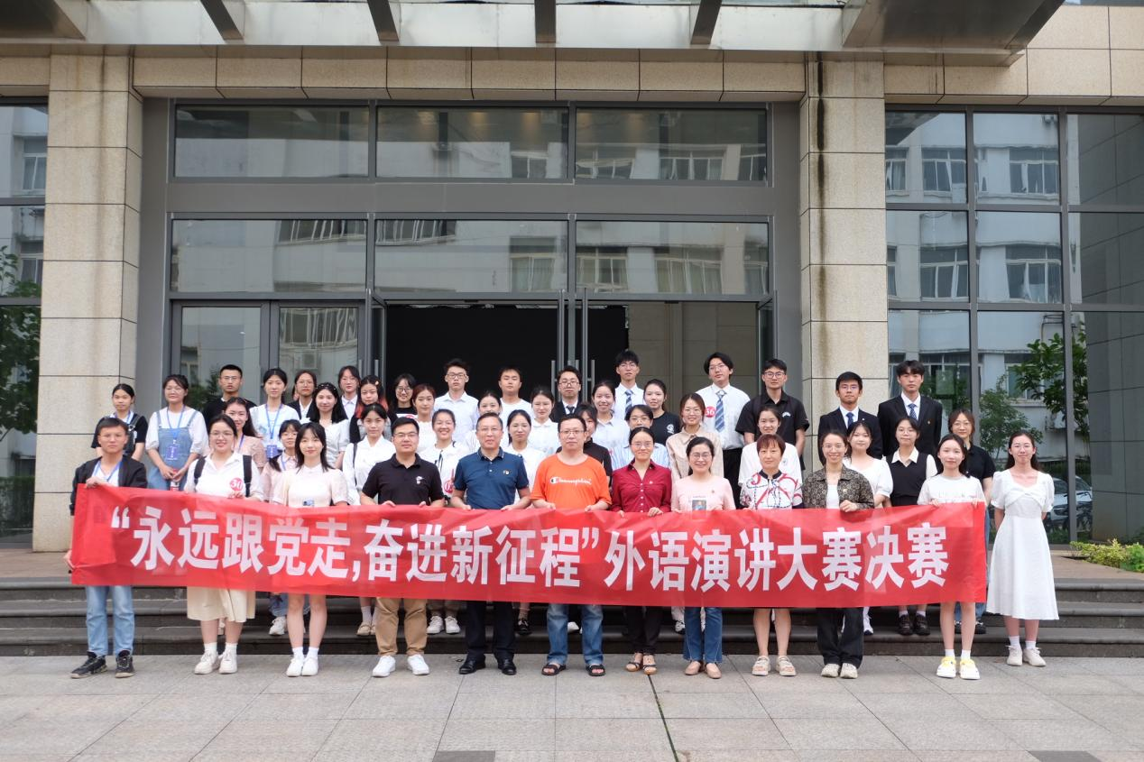 党委面向全校学生联合举办“永远跟党走,奋进新征程”外语演讲大赛。2023年6月8日14:30,“永远跟党走,奋进新征程”外语演讲大赛决赛在教25-108教室顺利举行。