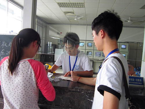 志愿者在北区15栋考场为参赛者解疑