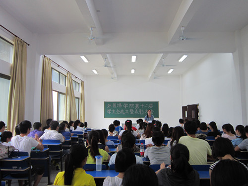 开展的各项活动时,他再一次表扬了那些在大英赛中默默奉献的志愿者,称他们的工作非常辛苦,无论是插彩旗还是搬桌子,每项工作都完成得很好。在表示对新一届学生会成员的祝贺时,他说,“独木难成舟”,学生会的每个部门都必须是一个团体。他还强调,学生会成员现在做的每一件小事都可能是对未来成就的一种积累,平凡的学生也会有不平凡的人生。吴正才又以07级优秀学生党浩以及吴鹏云的成长经历来激励在场每位学生认真做好每一件小事。大会在李慧敏的致辞中圆满落下了帷幕。