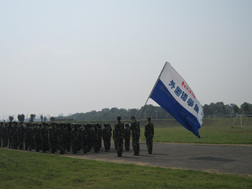9月18,记者来到国防生操场,远远地变听到齐步踏的声音-------紧凑而有节奏。不时地,又传来军训队员们的拉歌声、欢呼声、鼓掌声,空气中弥漫着别样的气息。