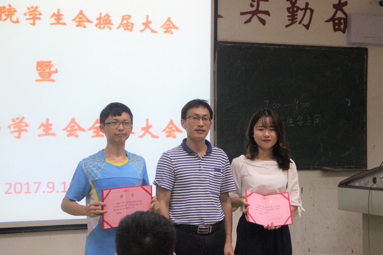 第十七届学生会主席谢焜主持,院党委副书记王朗、学工办主任兼团委书记刘芳馨以及2017级新生辅导员郑伟应邀出席,第十六届学生会部分成员以及第十七届学生会全体成员参加了本次大会。