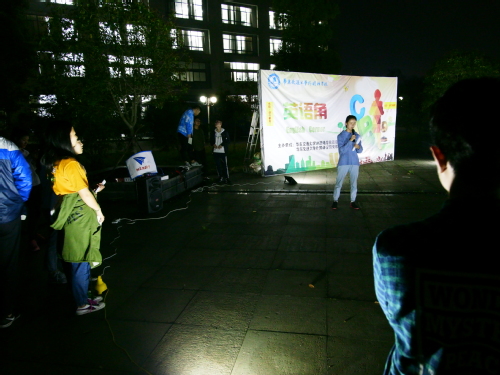 329日晚,由17级翻译二班主办的英语角活动于外院楼前广场如期举行。外教AdamGalinaSeanMark受邀参与本次英语角活动。