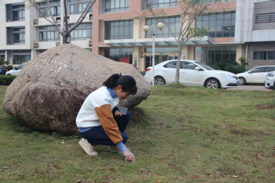 志愿者在逸夫楼、外院前广场等卫生志愿服务区域开展卫生整治志愿活动。