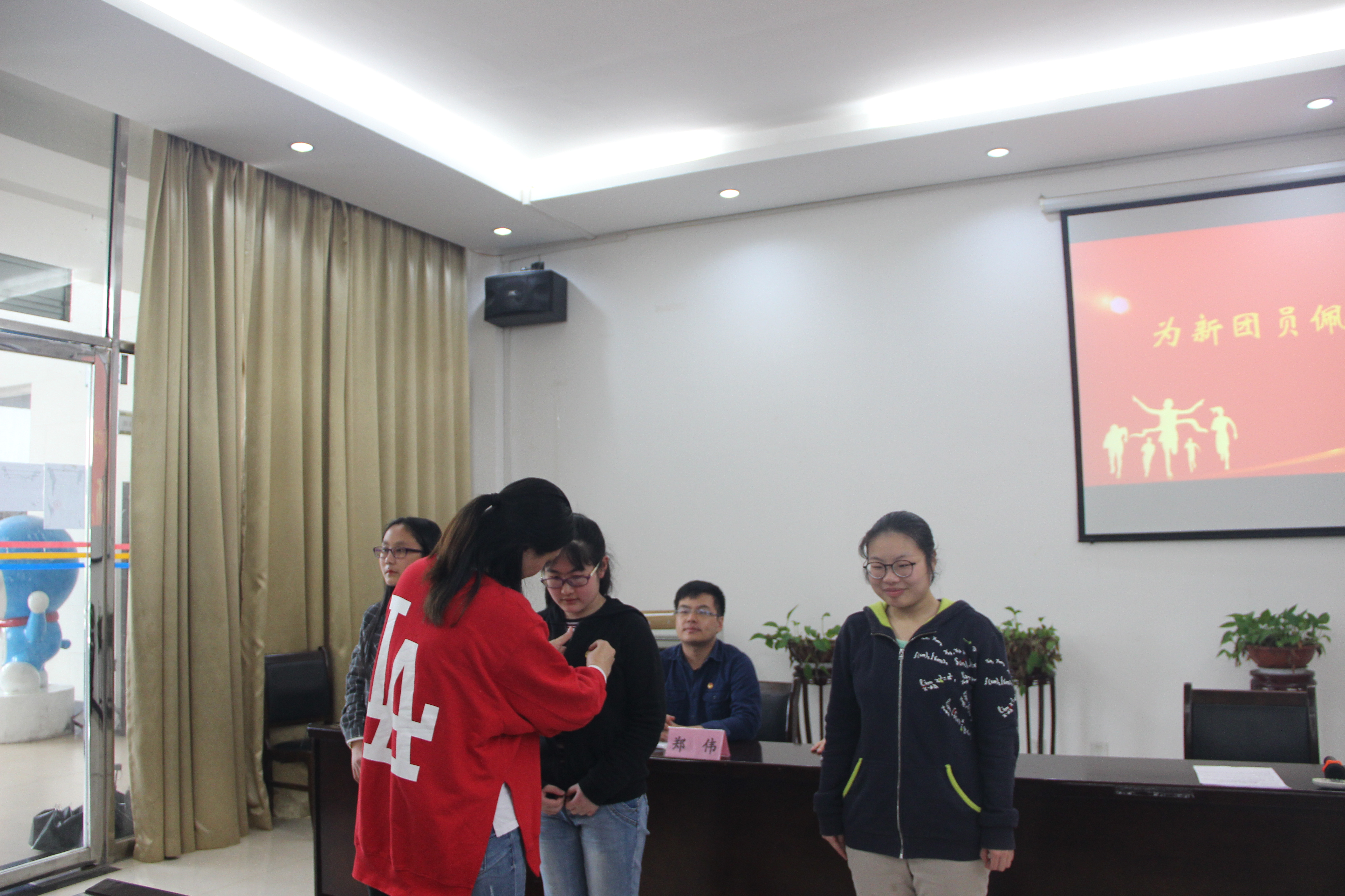 于15栋102会议室开展了特别主题团日活动。院党委副书记王朗、学工办主任兼团委书记刘芳馨、团委副书记郑伟、优秀团员代表及2018年新入团团员共同参加此次活动。活动由刘芳馨老师主持。