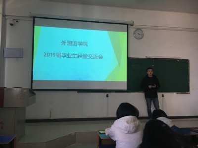 2019届优秀毕业生经验交流会在14栋110教室举行,大会邀请了15级英语(国际贸易)专业杨晓奇、王运华、吴淑霞、黄惠芬,15级翻译专业钟雨芹、向羽等部分优秀的大四学长学姐们到场分享经验,学院大二大三学生到场聆听,交流会由张颖老师主持。