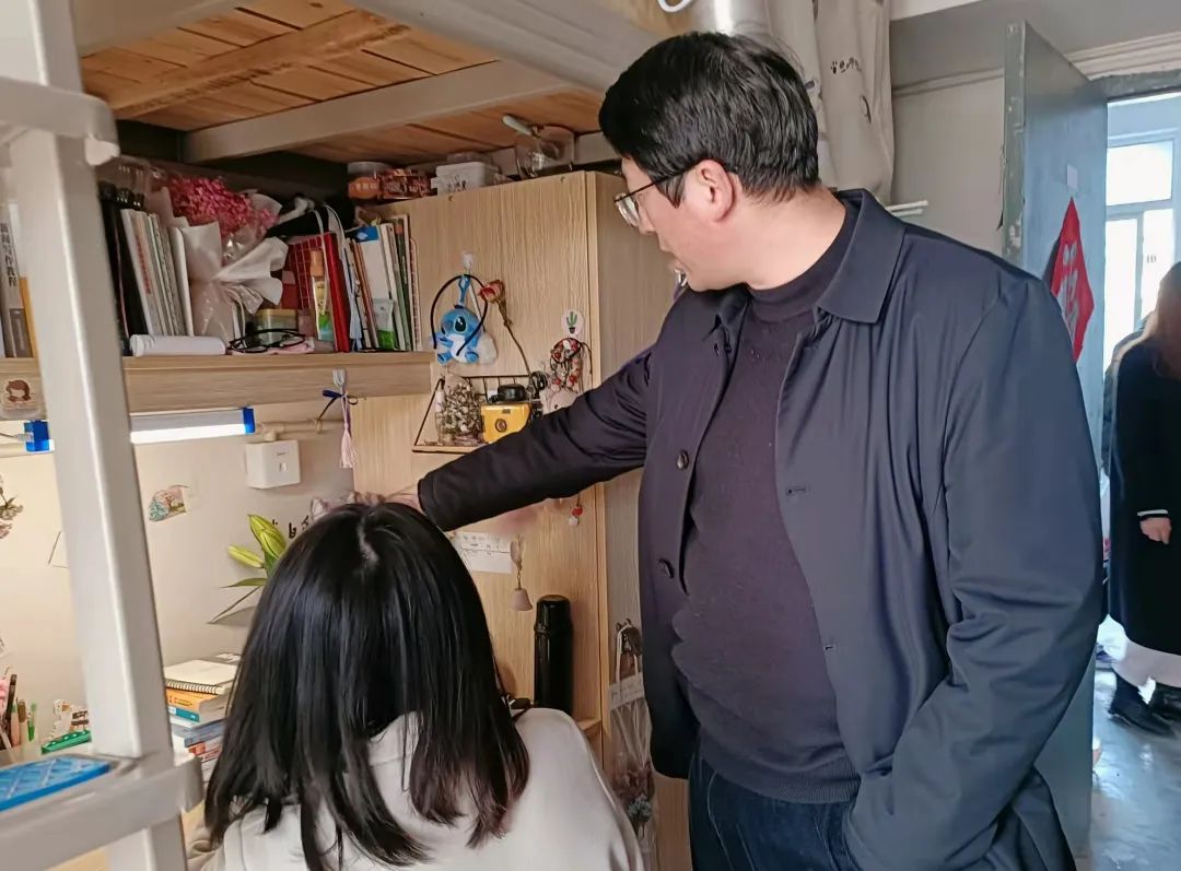 光辉等人随机走访了19级、20级和21级部分学生宿舍,了解同学们宿舍环境,关心同学们日常生活。走访的宿舍大多数卫生情况良好,地面清洁,桌面无灰尘杂物,内务整洁美观得体,室内通风情况良好,无违禁电器。