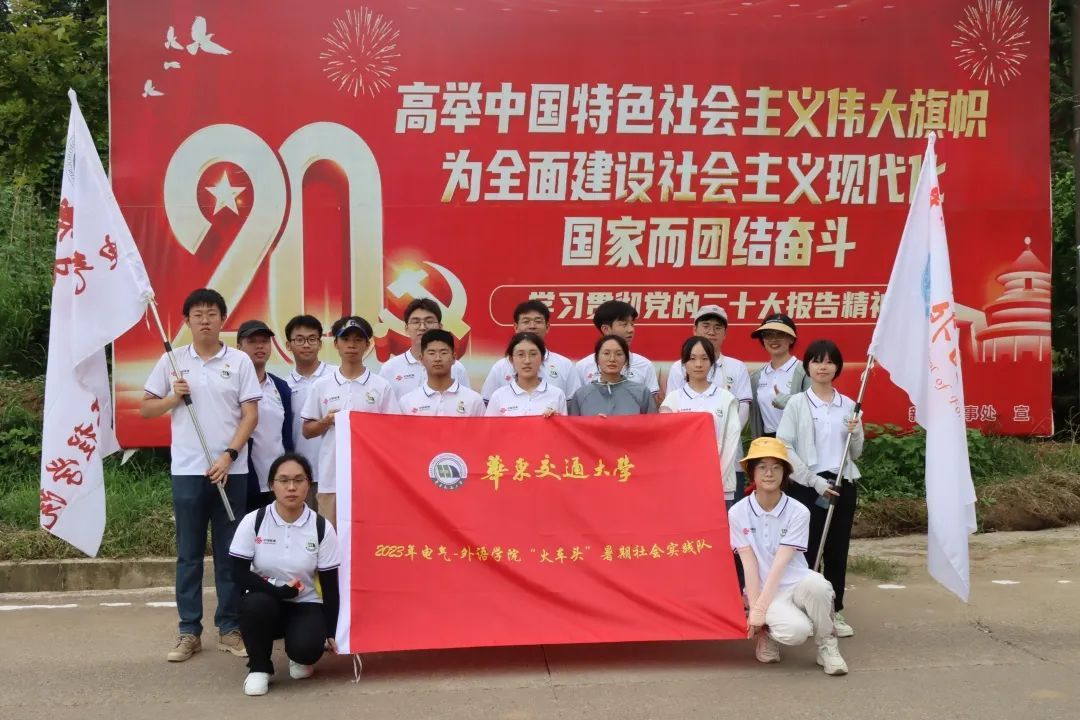 电气-外语学院“火车头”暑期实践队共17人,由外语学院学工办副主任、团委副书记熊弯老师与电气学院学工办副主任、团委副书记夏圣伟老师带队,外语学院学生骨干6人与电气学院学生骨干9人组成。实践队通过查阅各实践点相关资料后,选择江西省上饶市横峰县新篁办事处作为本次实践地点并与工作人员进行接洽。以“红色助农旅,宣扬新风尚”为主题,从“理论宣讲、政策宣传、安全教育、志愿服务、专项调研”五个方面开展文化,科技,卫生宣讲以及乡村振兴助农帮扶等系列活动。