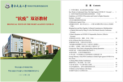 唐斌教授在《应用翻译》课堂里,将培养学生专业能力和疫情知识的学习普及结合起来,组织同学们搜集“抗疫”双语素材,并编辑为“抗疫”课程思政双语教材,让全校学生在学习疫情双语表达的同时,培养学生家国情怀和国际视野。该“抗疫”双语教材还作为黑料正能量