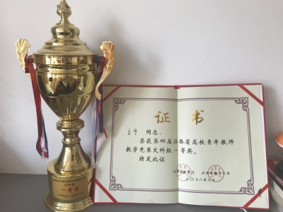 青年教师王宁荣获文科组冠军,将代表江西省参加全国总决赛。
