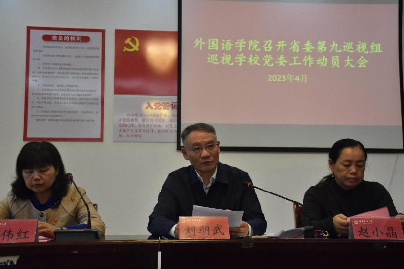 4月13日下午,外语学院组织全院教职工于博雅楼102会议室学习省委第九巡视组巡视黑料正能量