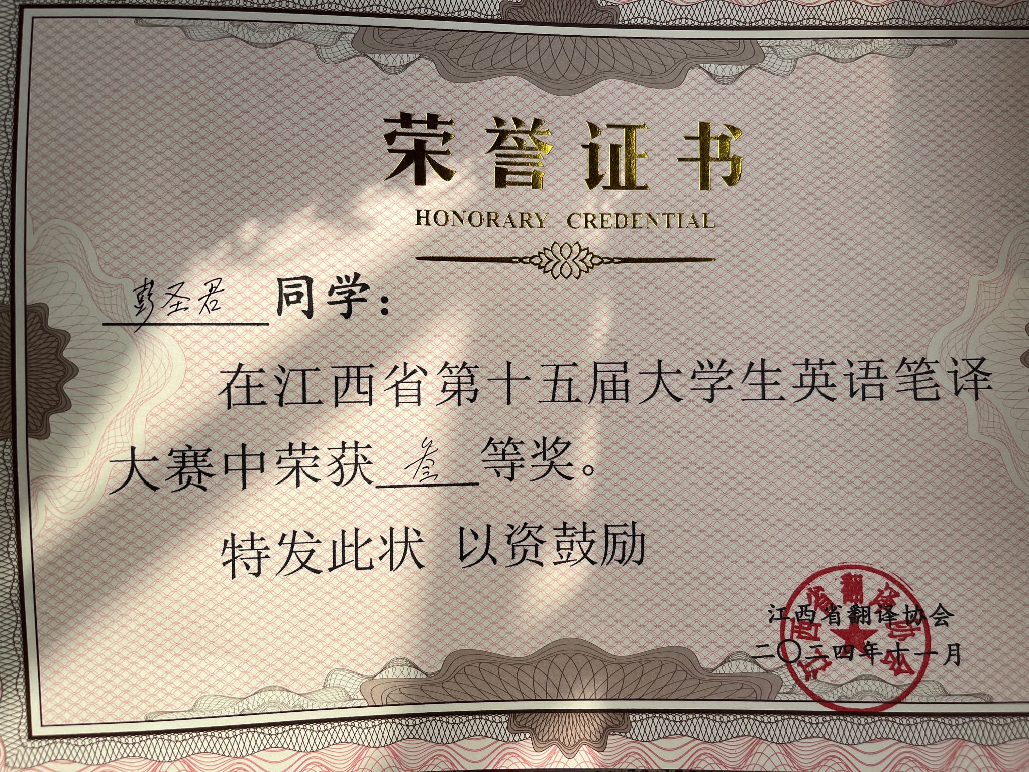 学子23级MTI李羿雯荣获省级二等奖;英语(国际贸易)专业学生余子胜豪,MTI学生陈萍萍、胡熊彬、黎明优、彭圣君荣获省级三等奖。