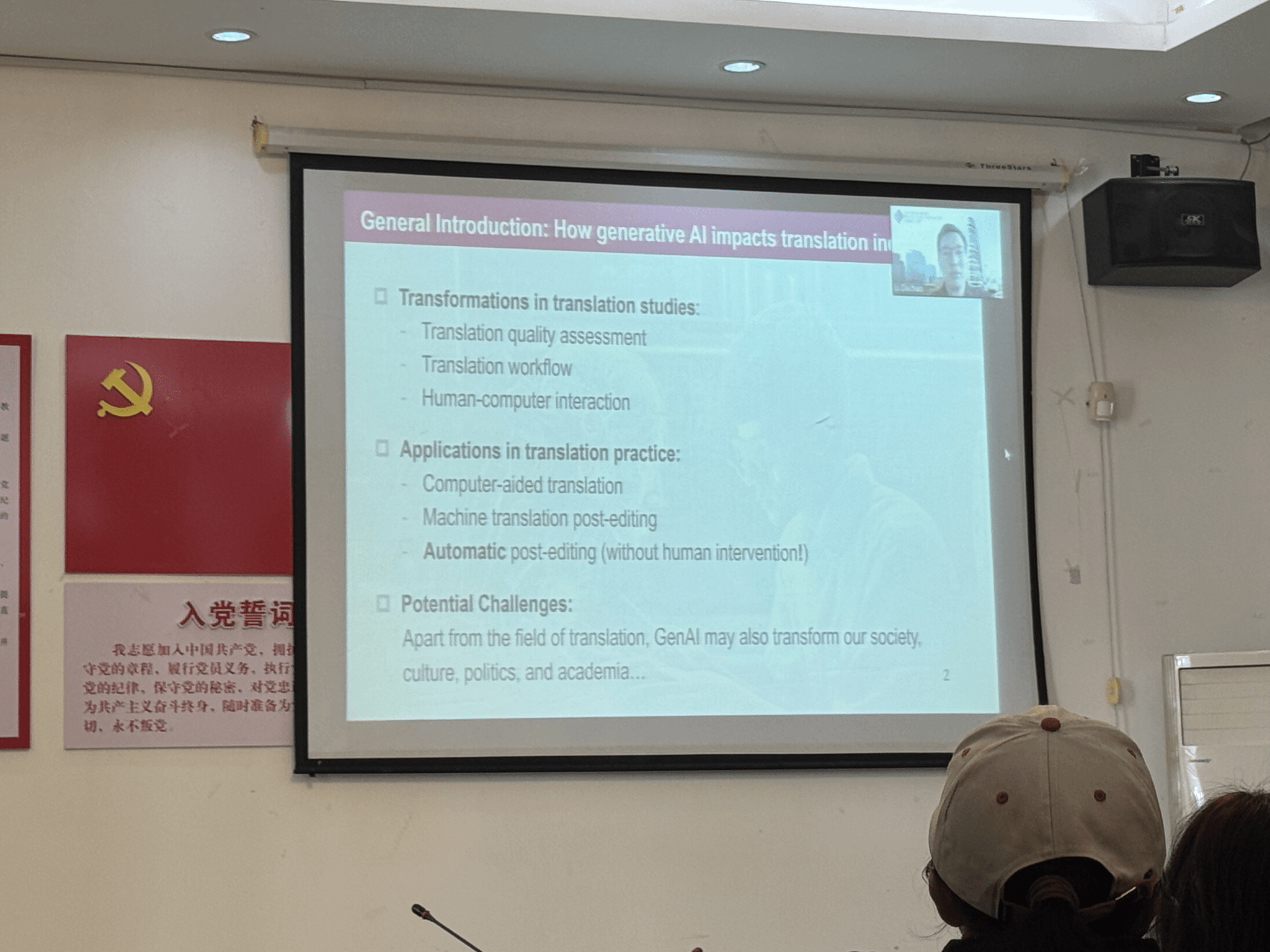 最后,石进芳教授对于翻译硕士专业研究生开题及论文相关问题与李德超教授进行了深入的交流。这场讲座对于翻译领域的专业人士、语言学习爱好者以及关注科技与文化交流的人士而言,都无疑是一场知识的盛宴。它将让我们站在时代的前沿,深入了解生成式人工智能与翻译的深度融合,洞察未来翻译行业的发展新趋势。